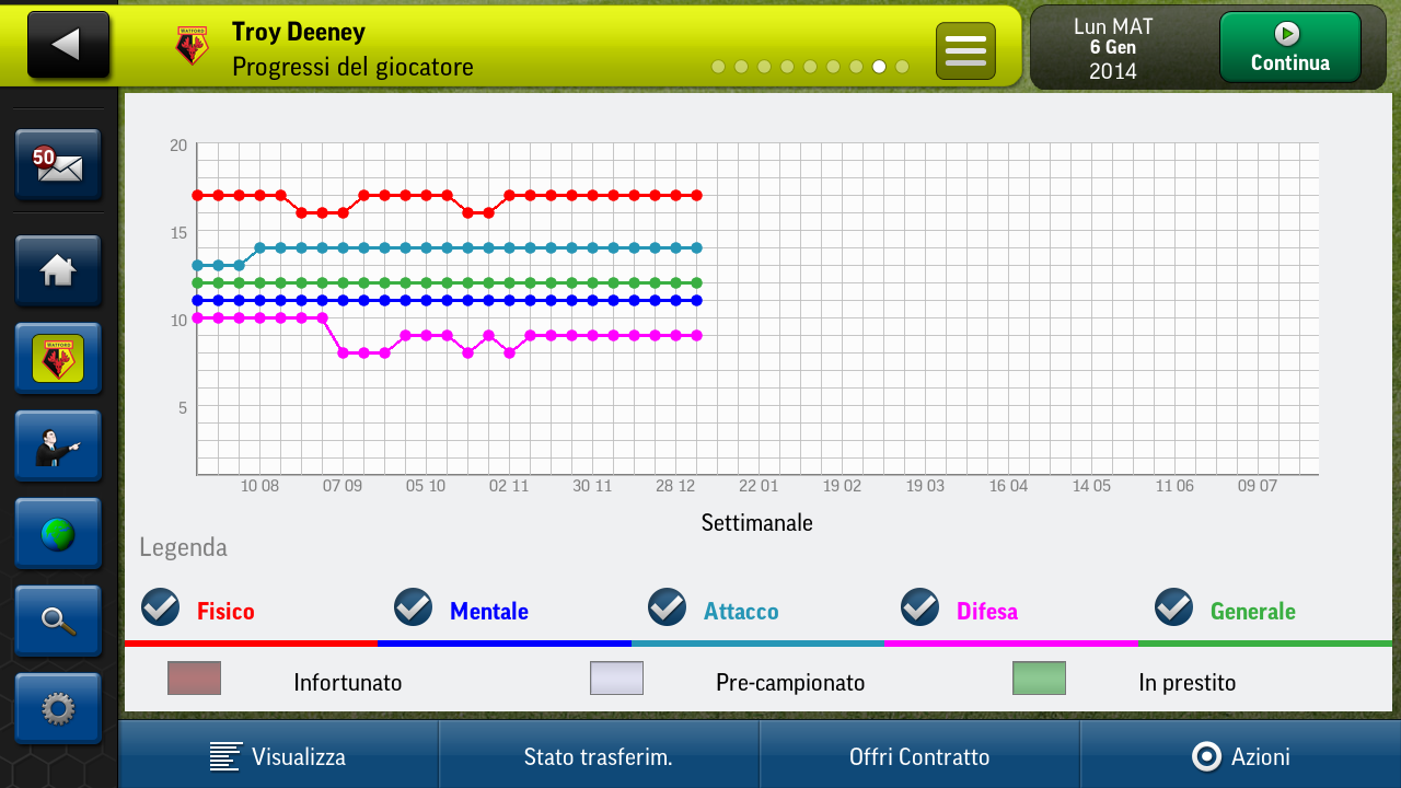 Football Manager Handheld 2014 per Android. Grafica completamente ridisegnata, con nuovi menu molto più intuitivi. Ora esiste la possibilità di scegliere tra più nazioni quando iniziate una nuova partita. In questo modo la vostra carriera non sarà più limitata a un solo paese. Potete, per esempio, iniziare ad allenare un club inglese per poi trasferirvi all'estero se desiderate fare nuove esperienze. La modalità My Club permette di creare il club da zero, scegliendone il nome, il colore delle divise e i componenti della rosa. Potete creare una squadra classica o una composta con i vostri familiari e amici e farla scontrare con le formazioni reali in un campionato o in una competizione internazionale. Il mercato ora ricalca più da vicino la controparte reale, grazie a un sistema di trasferimenti più accurato, con offerte e gestione delle rose più verosimili da parte dei manager guidati dall'IA. Tenete sotto controllo i progressi dei vostri giocatori nel corso del tempo. Potete seguire l'andamento delle abilità dei vostri calciatori per aiutarvi a prendere decisioni importanti, per esempio se trattenere o meno un determinato elemento nella vostra rosa. Interazione con i media migliorata, con domande da parte dei cronisti sulle vittorie, le sconfitte e il futuro della vostra squadra. L'analisi post partita migliorata fornisce feedback più precisi sui punti di forza e sui punti deboli della vostra squadra. Statistiche sulle stagioni precedenti più dettagliate che vi permettono di consultare i vostri successi passati.