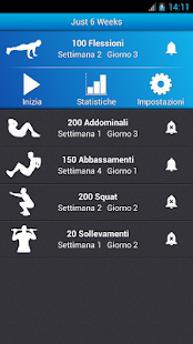 Just 6 Weeks per Android ti offre un’opportunità unica per metterti in forma, imparare ad eseguire 100 flessioni o addominali, e conseguire un fisico statuario in sole sei settimane. Dimentica sistemi complessi ed allenamenti infiniti e sfiancanti! Tutto ciò che ti occorre sono 10 minuti tre volte a settimana, un posto comodo e il tuo smartphone. Just 6 Weeks è dotato di un’interfaccia semplicissima con funzionalità comode e personalizzabili. Allenamenti, avvisi, statistiche. Tutto è alla portata di un tocco. Niente ti distrarrà dal tuo allenamento! 5 Programmi in un’unica applicazione: 100 flessioni, 200 addominali, 150 abbassamenti, 200 squat, 20 sollevamenti Funzionalità semplici per raggiungere obiettivi complessi:, 5 Programmi indipendenti che possono essere usati in qualunque combinazione. Selezione del livello, in funzione del risultato ottenuto ad un test di forma fisica. Timer automatico di “recupero” con impostazioni personalizzabili. Organizzazione degli allenamenti con avvisi. Correzione automatica dell’intensità dell’allenamento in base al tuo livello. Statistiche dettagliate degli esercizi effettuati. Importazione ed Esportazione dei dati di allenamento. Un’interfaccia che non ti distrae dal tuo obiettivo.